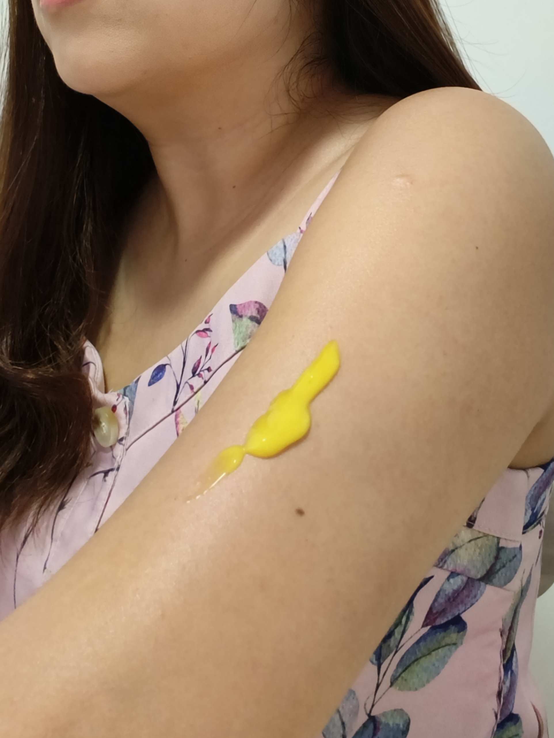 This maintenance cream certainly doesn't feel like how it looks. On first impression, this yellow cream looks like it might be oily but it doesn't leave behind a greasy residue when I apply it on my arms. It absorbs well and even has a cooling sensation thereafter. It smells like muscle cream by the way!